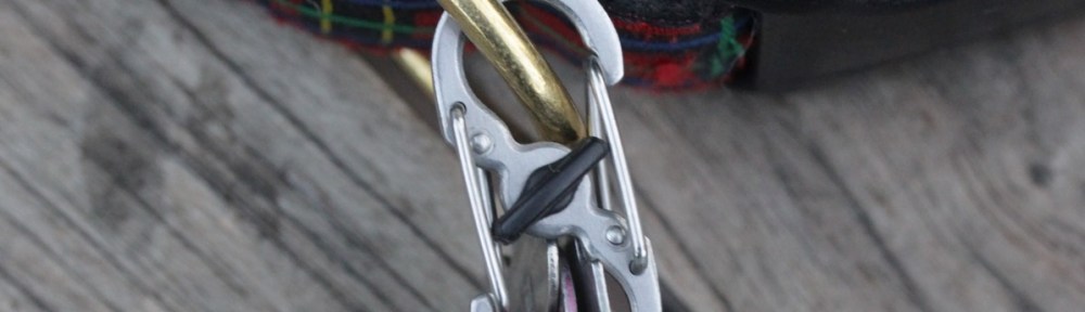 Loken has a dog collar for the Christmas season, for other seasons, and his regulation CCI blue collar. I used to break nails on the split rings while moving the tags until I realized I could use a locking S-biner to attach them.